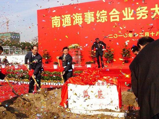 2010年12月18日,南通海事大楼隆重开工。各级领导对大楼的开工建设表示高度重视,前来参加了开幕仪式。参加仪式的有省海事局的领导、市长丁大为和副市长沈振兴等。开幕式上,省海事局局长、副市长沈振兴以及南通代建办主任都作了非常重要的讲话,他们要求施工单位严把质量关,精心组织、成立现场领导小组,紧紧围绕项目的各项建设目标,必须高起点规划、高标准要求、高力度地及时对工程情况进行检查督促。我公司全体员工在公司领导层的带领下,一定不负重望,精诚团结、勤奋工作,以过硬的质量、一流的服务完成海事大楼的桩基工程。